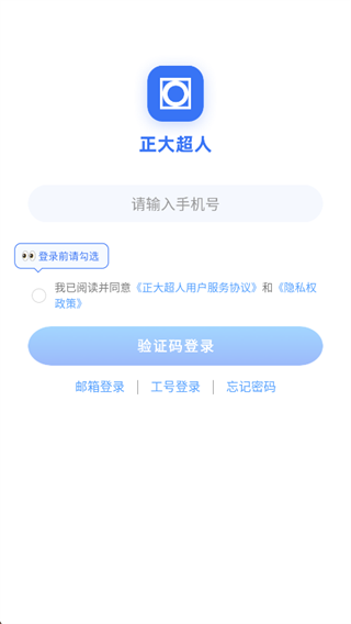 2.输入手机号勾选小圆圈点击验证码登录,还有邮箱、工号登录等。