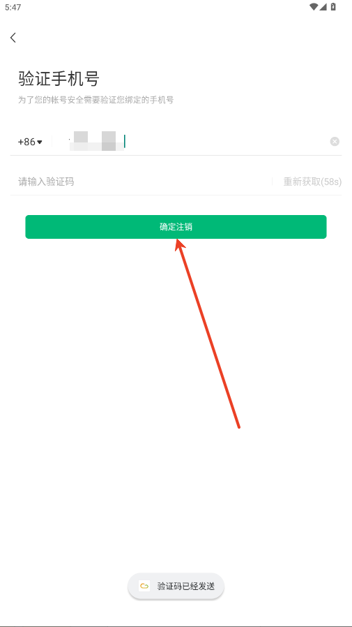 4.输入手机号获取验证码点击确认注销即可。