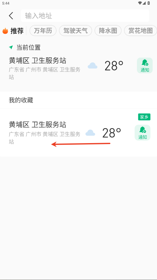 2.我的收藏内,将天气栏往左滑。