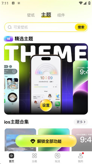 2.首页中有着超多免费的小组件和大量的壁纸就在这里等你。