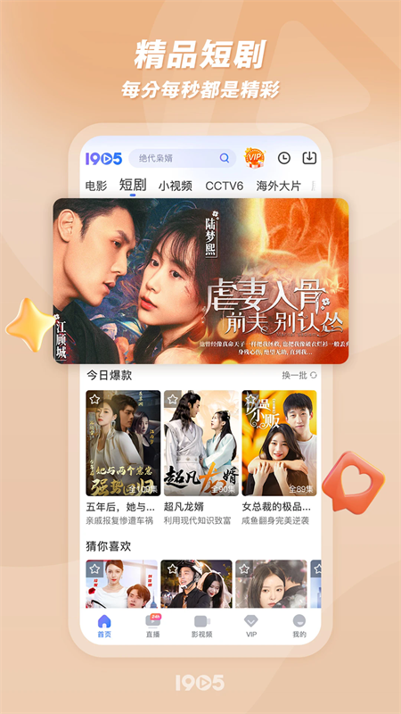 1905中国电影网app是一款由CCTV6电影频道推出的手机在线电影免费观看软件,这款软件拥有万部优质大片,用户不仅可以在这里看到最新的院线大片,还可以在这里找到超多海内外经典作品,能够很好的一饱眼福。此外,该软件最大的亮点就是还为用户准备了精彩的影视解说短视频,帮助用户用最快、最易懂的方式理解一部影片的内核。