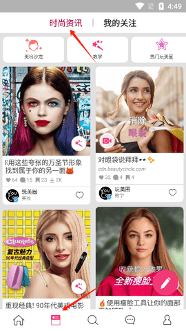 4、在主页点击下方状态栏的第二位可以查看最新的时尚资讯
