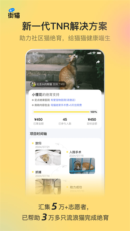 街猫app官方正版聚集了来自全国的爱猫人士,用户可以在这里与天南海北的人们一起交流养猫的心得、猫猫的美图以及各种小猫的日常,还可以亲身参与到软件的流浪猫犬绝育计划,为流浪动物关爱与社区环境出一份力。