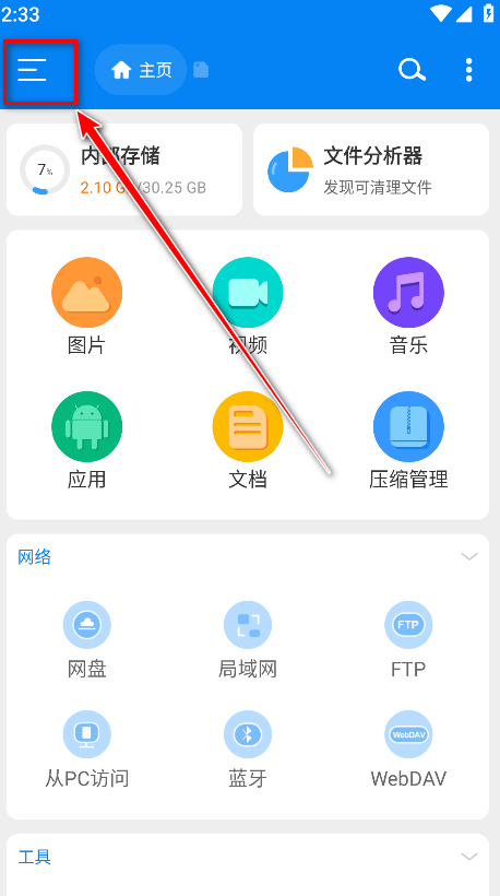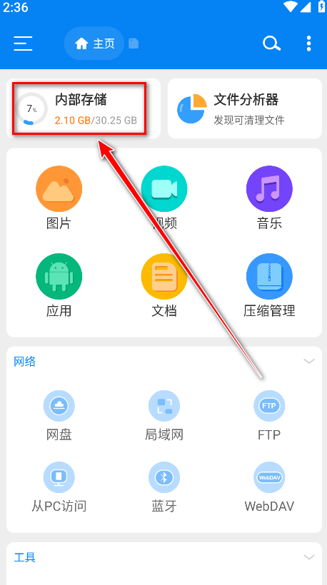 4.返回到主页点击内部存储。