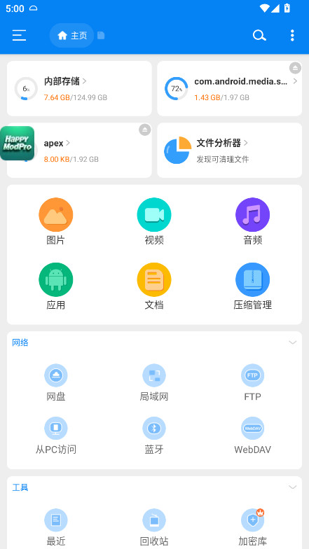 RS文件管理器app是一款功能强大的安卓文件管理与网络传输应用。它旨在为用户提供一个全面、高效的文件管理解决方案,支持包括本地操作、网络存储连接、局域网传输等多种功能。这款应用不仅能轻松管理你的手机文件,更通过压缩解压、加密保护、回收站等高级功能,确保你的文件安全。它不仅仅局限于本地文件管理,更支持用户登录主流网络云盘,让你能够在一个应用内同时管理本地和云端的文件。此外,它还支持LAN/SMB/FTP连接,使得用户能够方便地管理电脑、服务器以及智能电视、蓝牙设备等多种终端上的文件。这种全面的网络连接和管理能力,让你的文件传输和共享变得前所未有的简单。