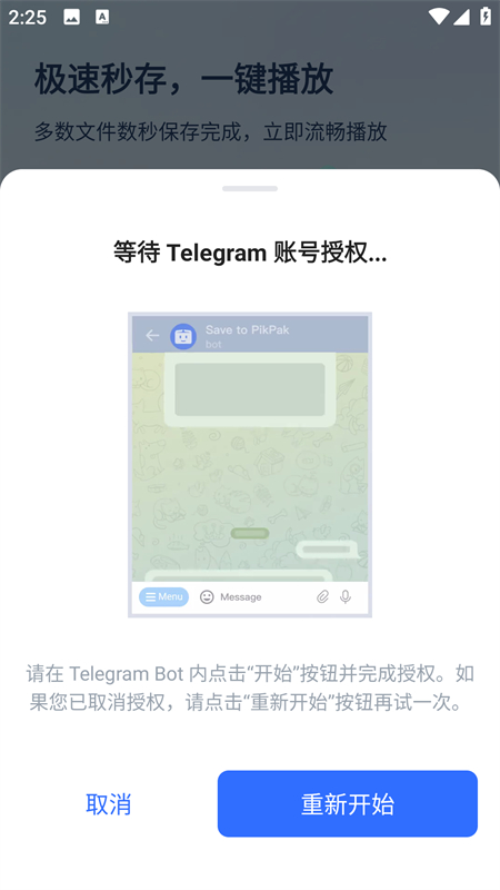 A:您可以进入您目前 Telegram 的 Bot 中输入 /settings,选择取消授权,之后再进入您目前用的 PikPak 中点击打开 Telegram Bot 进行绑定。