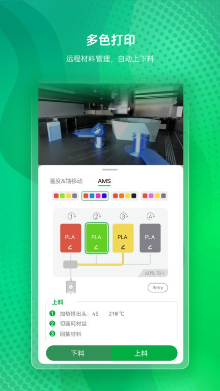 bambu handy app最新版作为3d打印软件,能够便捷的在手机上进行打印操作,支持在手机上控制上下料,可以查看实时的打印进度,能够用手机控制暂停和停止,还能查看打印设备的运行状态。