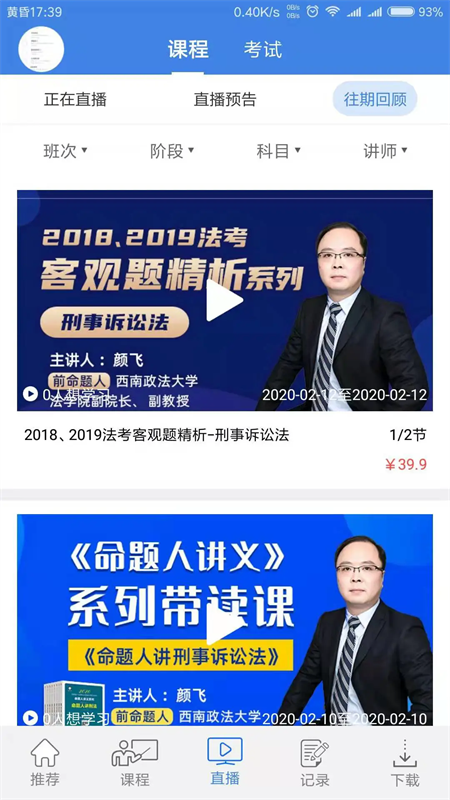 2、在课程界面下,我们能够根据班次、阶段、科目、讲师筛选自己喜欢的课程。