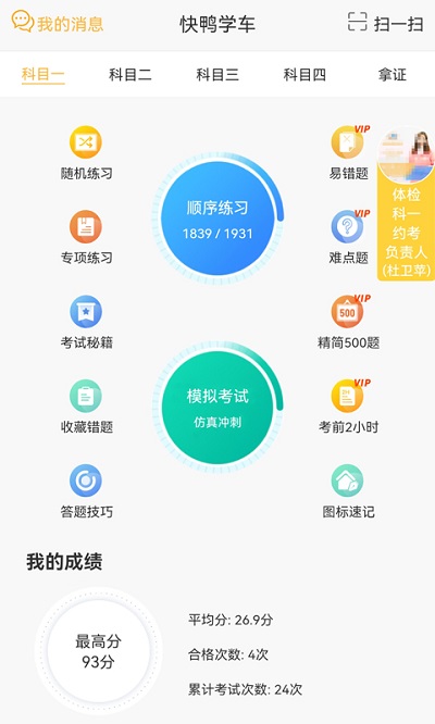 快鸭学车包含科目一、科目四模拟考试以及自主预约学车软件,我们让每一个学员享受尊贵、时尚、便捷的学车软件的服务,