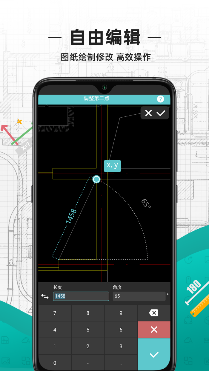 7、绘图编辑,提供CAD图纸新建绘制、修改编辑、复制删除、圆角倒角、文字查找、图块统计、颜色填充等功能;