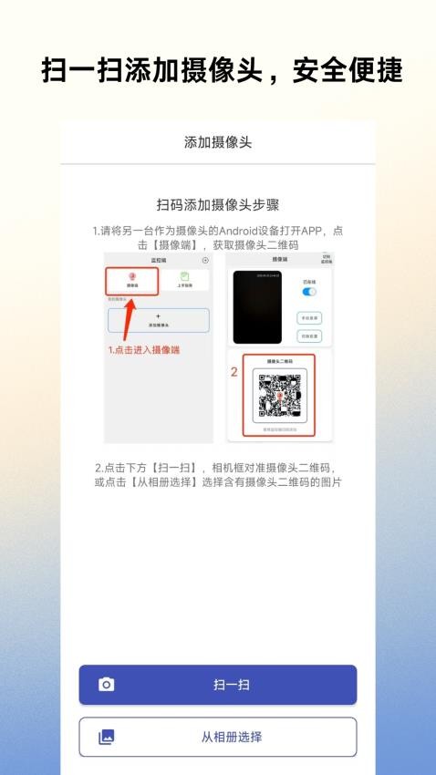2、进行摄像头添加管理,并能通过相册导入或扫一扫快速识别绑定;