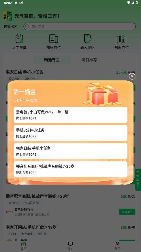 如果遇到发放薪资与商家的发布信息不一致,或者兼职后少结算/不结算工资的情况,可以在本页面左上角