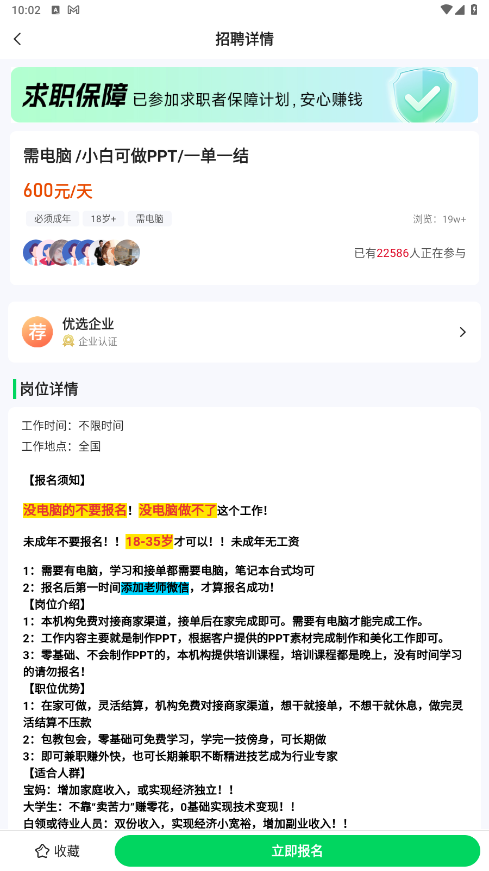 您好,对于每一条岗位信息,平台会严格筛选并且长期监管。每一家在平台发布岗位的雇主企业,我们都是会要求做严格的企业认证的。请您放心兼职哦。