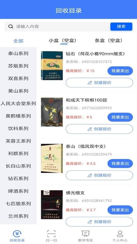 众鑫APP官网版是一款专注于废品回收交易服务的软件,软件中的废品回收主要针对废弃烟盒、瓶盖、包装袋类的回收,还为用户提供有丰富的新手教学资源,可以随时在线观看各种回收交易的教学视频,助力用户快速上手使用回收交易服务功能,可将你的各种废弃物品在线出售,可通过回收变现的方式提高收入,支持用户自由创建报价,与废品回收商家协商价格将废品回收变现处理,将各种支持回收的废品详细分类,方便用户快速查找废品类型回收废品,还可以通过扫码入库的方式,将各种空盒、瓶盖、包装袋快速扫码录入库存管理,十分方便,有需要的用户就快来下载众鑫APP手机版使用吧!