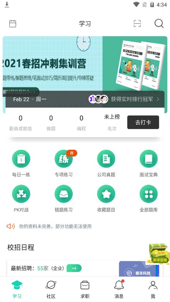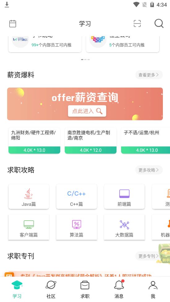 牛客求职招聘app这款软件一个最大的优势就在于可以做题,不管是大厂的真题还是程序员练习题,用户都可以下载然后练习,这对于很多找工作的人来说是一个非常不错的设计,极大的节约了用户们的时间。