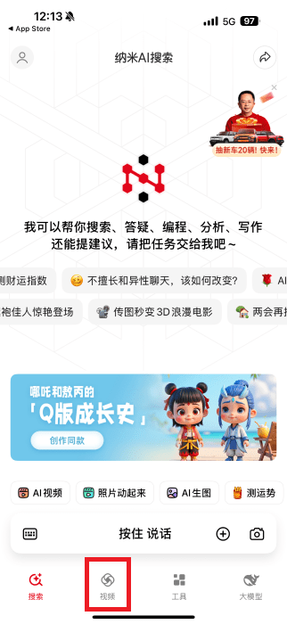 1.首先打开纳米AI搜索app,进入软件后点击界面左上角的头像选项。