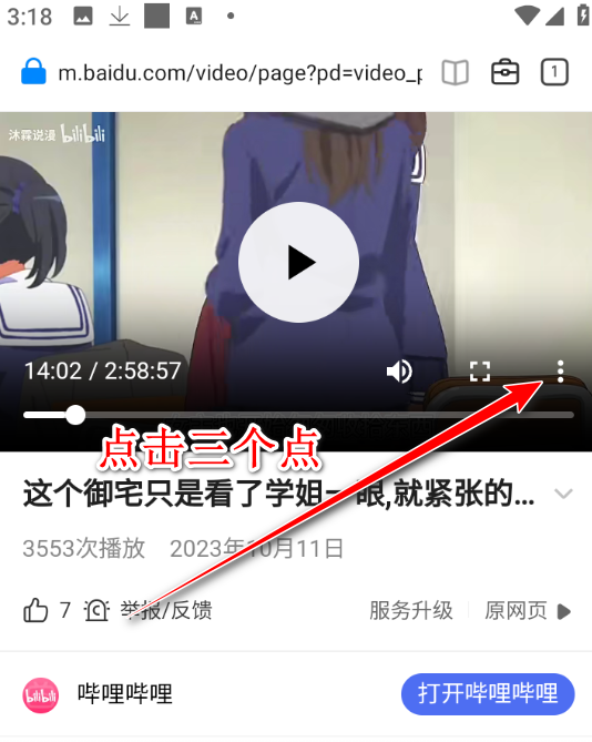 1.这里我们就以路人女主的养成方法的动漫为例子,从下载视频到找到视频做详细展示,网上搜到的视频点击视频右下角的三个点