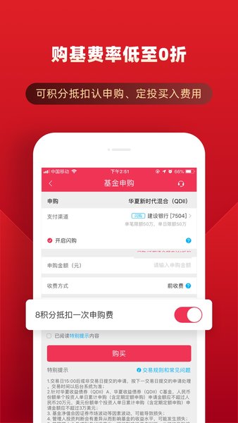 - 支持基金转换业务申购补差费的积分抵扣功能;