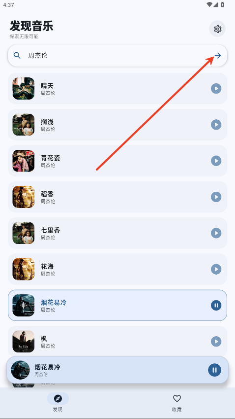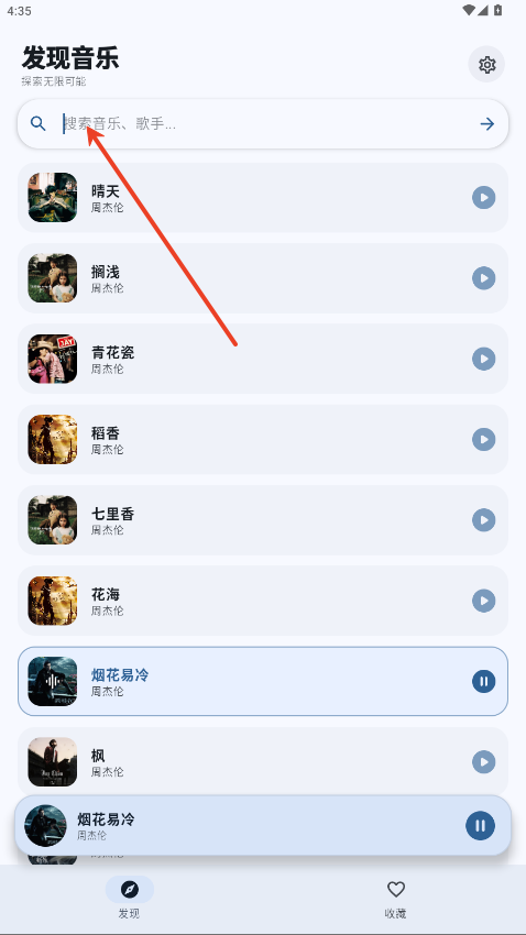 2.在搜索框内输入想听的歌曲,点击→