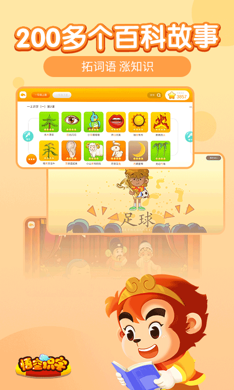 悟空识字全课程免费版是由宁波启点教育科技有限公司推出的一款幼儿启蒙软件。帮助3到8岁的学龄前及一年级儿童进行汉字学习,这款软件以西游记作为主题,无论是画风还是界面都充斥着西游元素,并且所有的文字讲解都融入了西游的故事,提升孩子的识字兴趣和效果,app还根据了西游的剧情层层递进,创建阶梯阅读,一边学汉字一边看西游,传统文化两手抓。