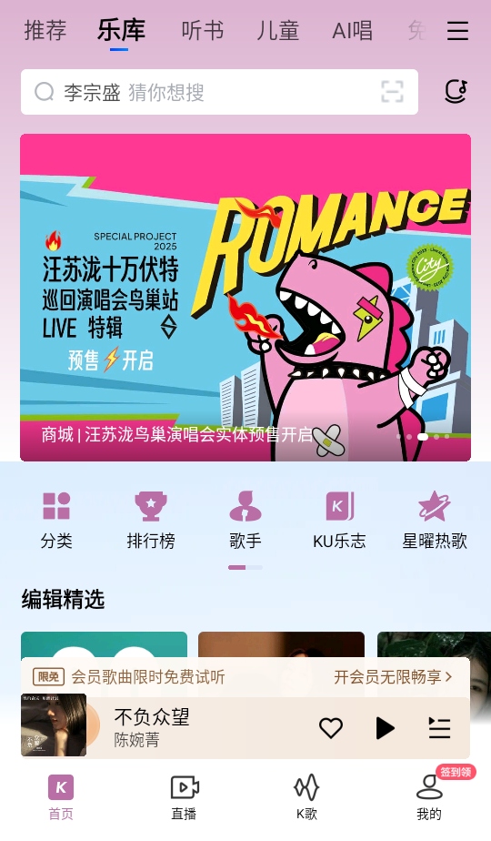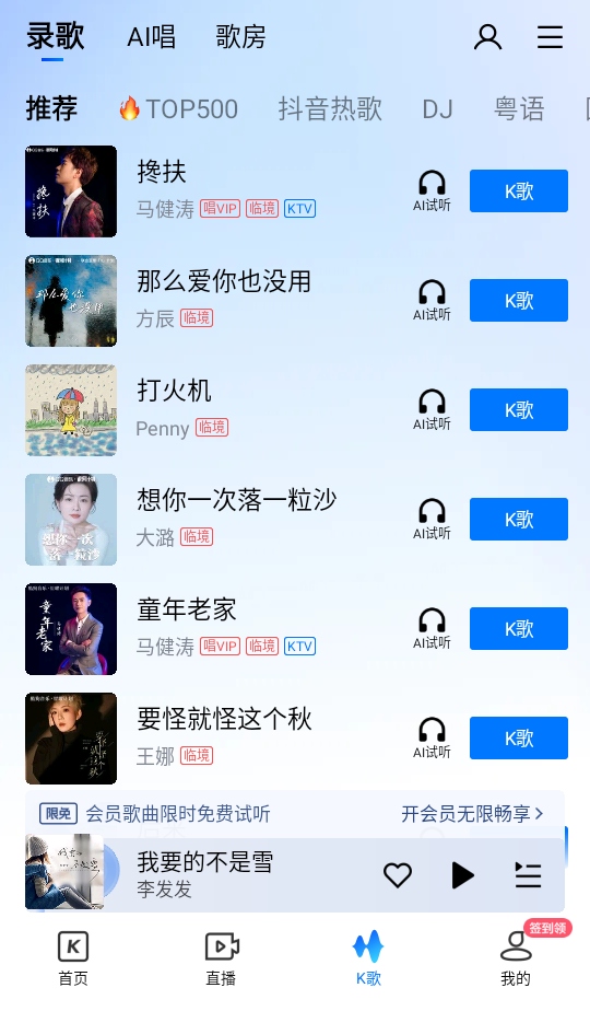 4、除啦传统的听歌以外,软件内还能k歌看直播