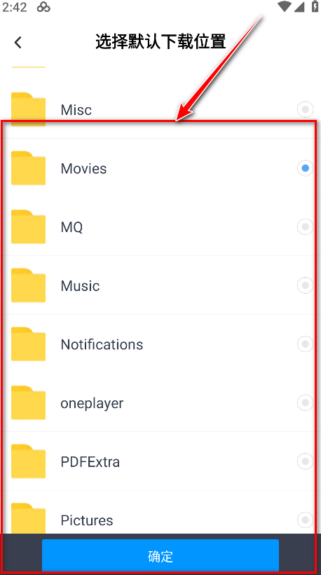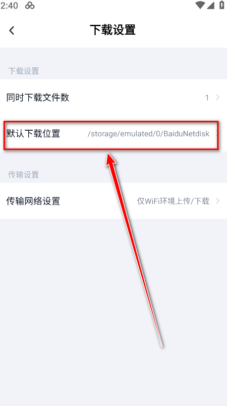 4.点击默认下载位置。