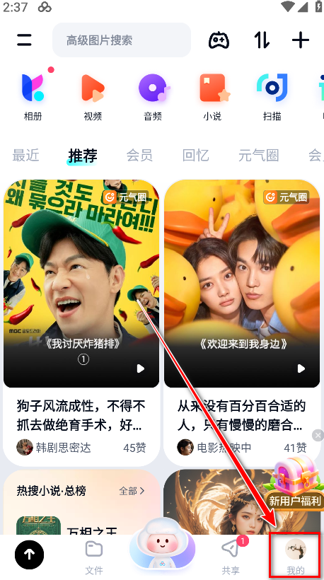 1.打开百度网盘,点击右下角我的。