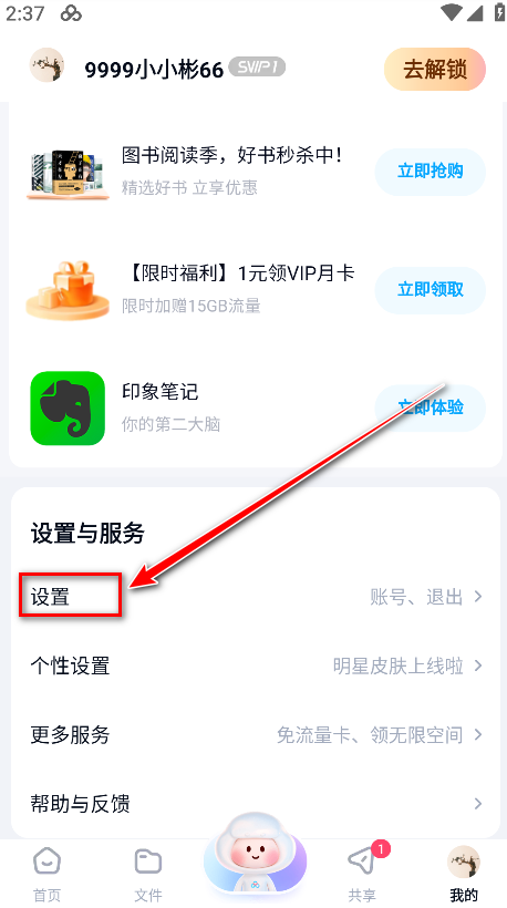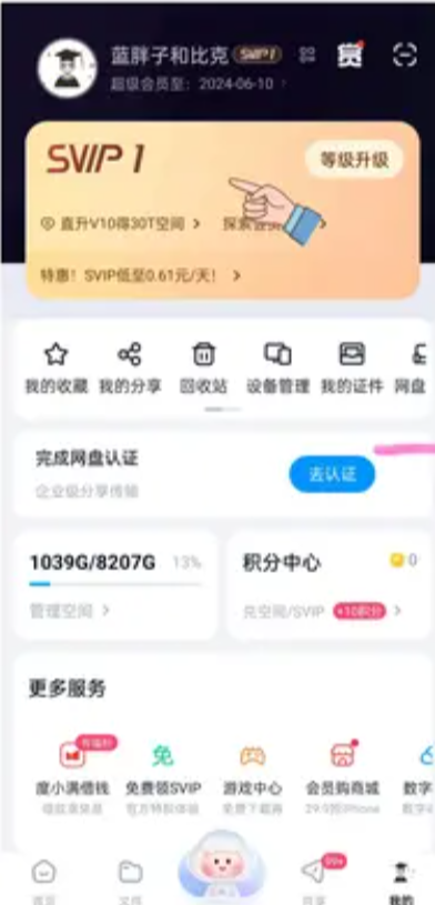 1.点击我的” - 头像下方“超级会员SVIP