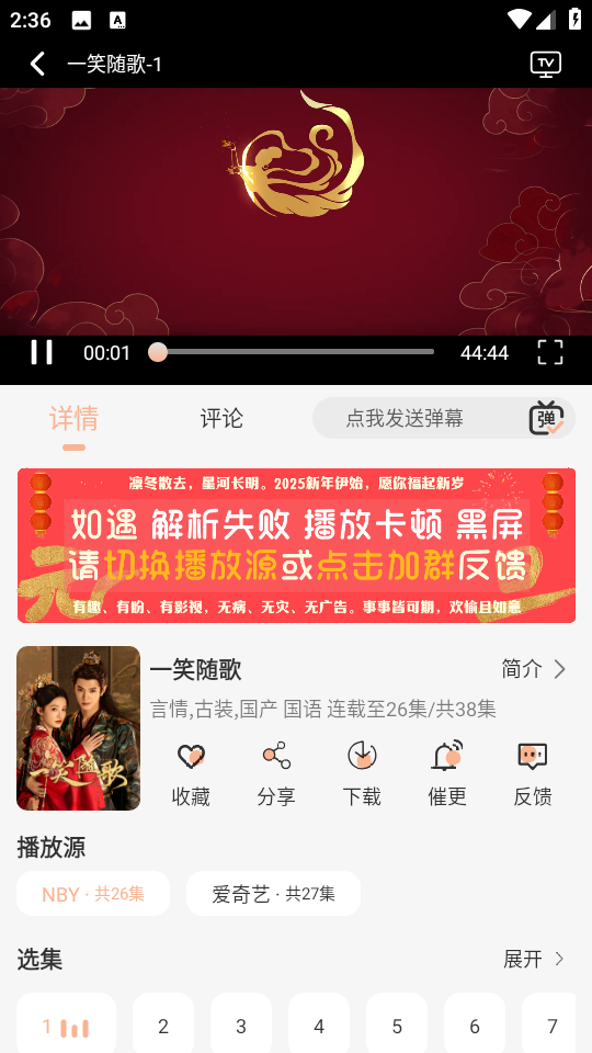 1、进入余白影视最新版,任意播放一部电视剧。