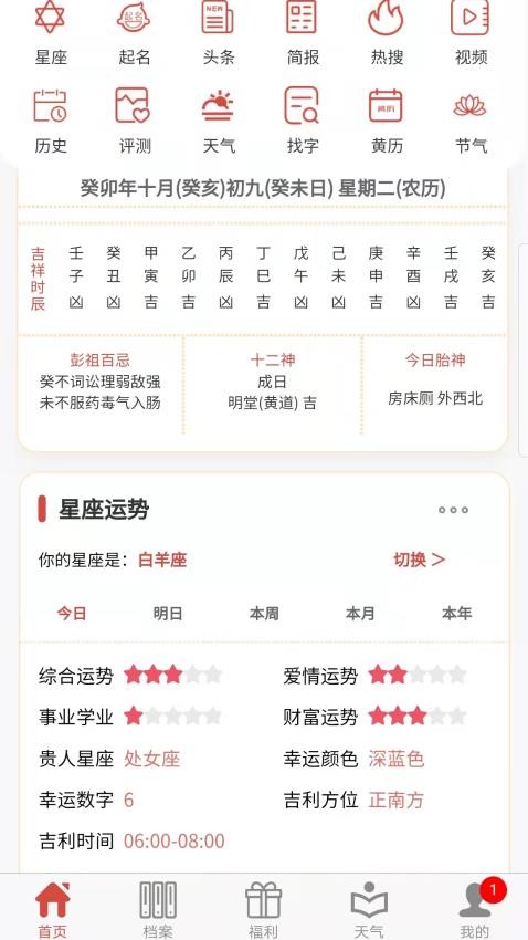 2、在软件中用户可以查看黄历信息了解黄历宜忌详情;