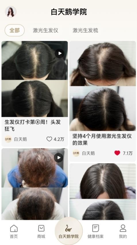 用户也可以对自己使用白天鹅产品治疗过程进行拍照打卡,对比治疗前后的变化,轻松对比。