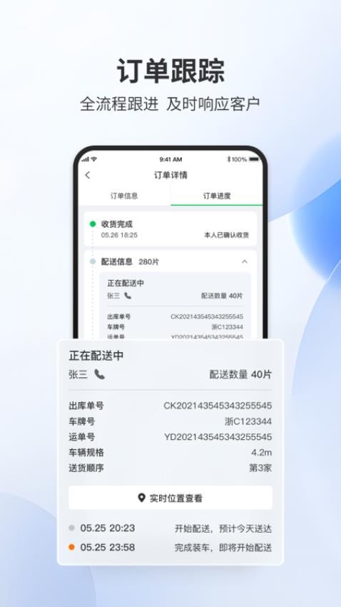 3、支持用户可以对客户的订单进行追踪,就可以看到关于订单的配送详情。