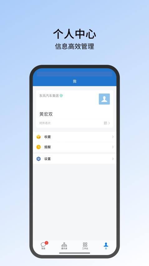 东风智慧办公app官网版是一款为用户高效协同的办公平台软件,软件提供了线上的即时沟通交流,你可以实现跨组织的无缝沟通,与自己的同事实现交流互动,对自己的消息中心也可以全面的查看掌握,从而可以更好的进行了解,轻松交流系统,在线智慧办公。平台还支持用户查看自己的通讯录好友,找到同事的练习方式,就可以便捷的联系,并且用户也可以对自己的个人信息进行管理,编辑自己的信息来进行展示。此外,东风智慧办公软件还提供了多种常用的办公应用,在工作台中都可以进行处理自己的待办业务,轻松办公,有需要的用户就赶紧来本站下载使用吧!