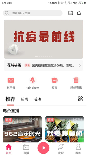 3、点击直播界面可看到热门主播与推荐电台。