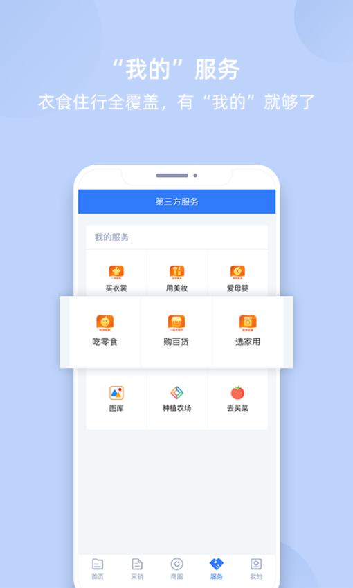 其中还提供有买衣裳、用美妆、吃零食、购百货、种植农场等多种第三方服务可供用户在线使用。