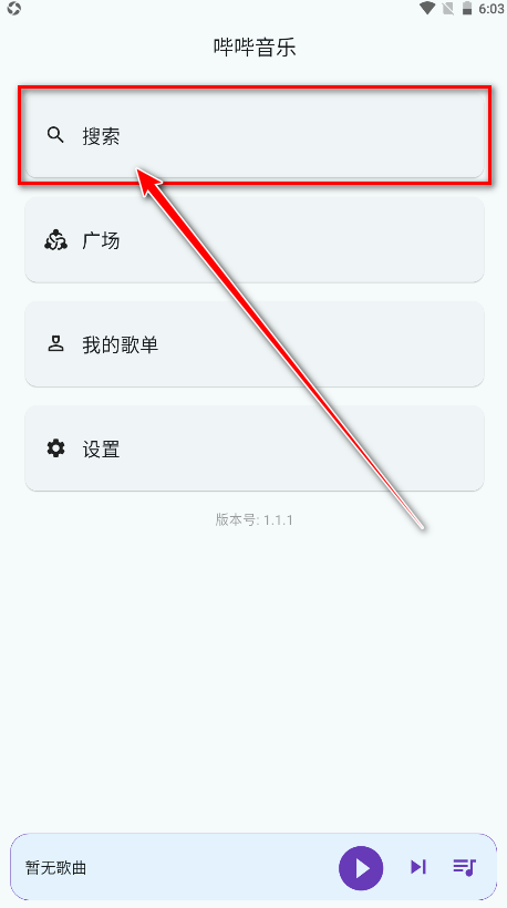 1.打开哔哔音乐,点击搜索。