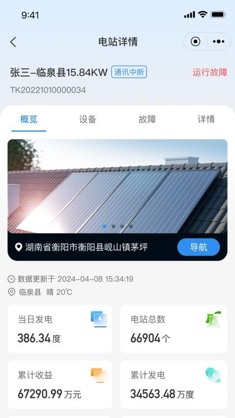 3、可以随时查看电站的详情信息了解电站设备运行情况;