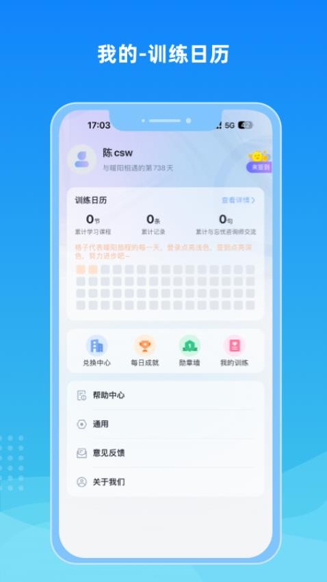 用户可以对自己的每日成就进行查看,查看自己训练获取的成就勋章。