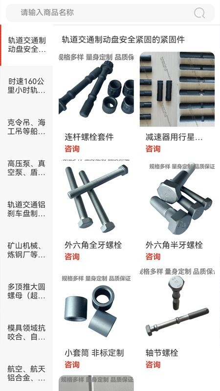 4、点击紧固件分类或搜索,可帮助你快速找到对应商品并在线咨询;