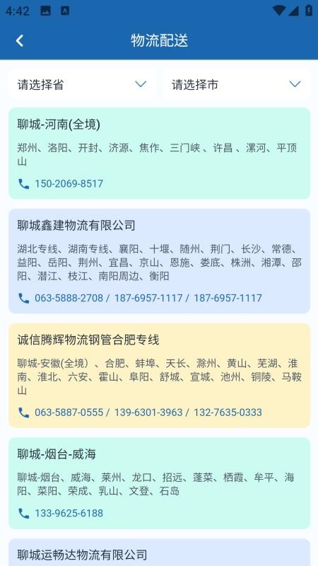 还提供了很多物流配送服务资源信息,可随时查找物流公司联系对方对接货运交易。
