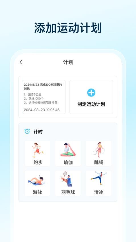 根据用户的身体情况和运动目标,制定相应的运动计划,帮助用户更加科学地进行步行锻炼。
