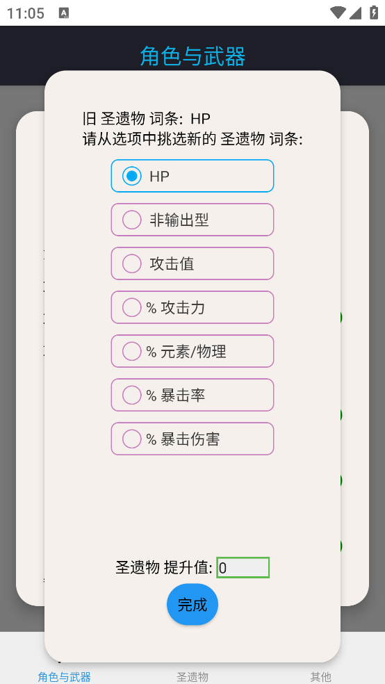 3、选择当前装备的武器及圣遗物,并根据实际效果调整属性加成。