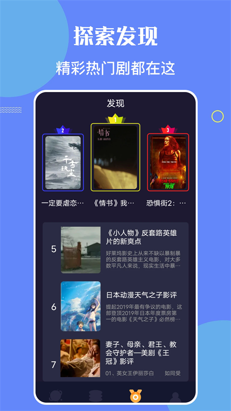 星辰影视高清追剧app同时还为用户准备了热播榜、飙升榜、热搜榜、新片榜等丰富的实时榜单,让用户能够通过各种榜单,轻松找到自己感兴趣的内容。此外,用户还能够对一系列影视作品进行离线缓存操作,能够很好的避免了没有网络条件的情况。