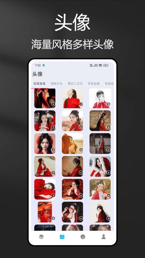 还将不同风格类型的头像资源分类,让用户可以轻松查找自己喜欢类型的头像。