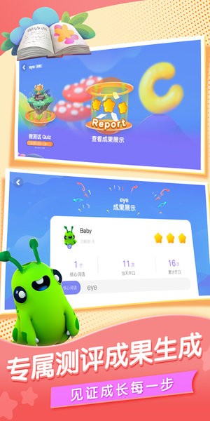 实时数据,能够测试出孩子的专属英语学习的报告,孩子的学习数据在这里一目了然。