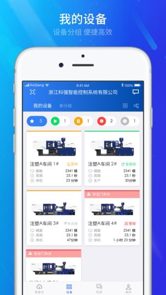 管工厂云是科强信息技术有限公司针对注塑企业开发的一款物联网信息化软件。通过本软件对注塑机实现网络化设备监控、利用率分析、参数修改查询、机器警报查询并可通过软件消息预设完成高效提醒。帮助用户实现世界万里走,设备掌中留的美好愿景,提高设备管理效率。