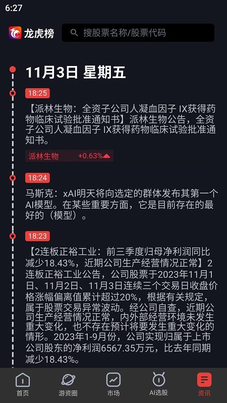 5、在资讯板块,就能以时间轴的方式阅览资讯内容,了解最新市场动态;
