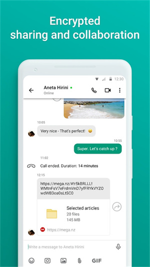 1、使用MEGA云盘自带的安全聊天进行端到端的用户加密通讯,包括全方位隐私的视频和音频通话。