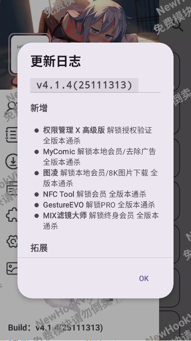 框架支持:HookVip支持以下框架:LSPosed/LSPatch/太极/应用转生。