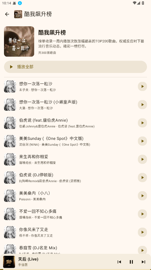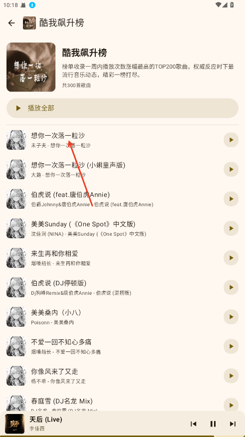 3.点击歌曲即可在线播放,支持后台播放。